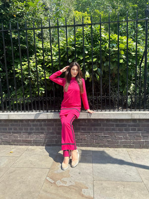 Manahils Stitched Co Ords Pink Co-Ord Set With Strip
