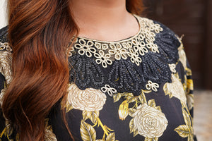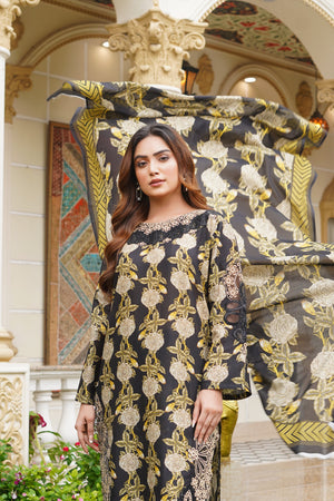 This exquisite festive/party wear kurta set exudes elegance in deep purple. The straight cut kurta features intricate embroidery, while the cotton shalwar adds a traditional touch. Complete with a matching dupatta in lawn fabric, this 3-piece ensemble is perfect for all seasons. Lining attached for convenience. Brand: Gulposh By Kkt.