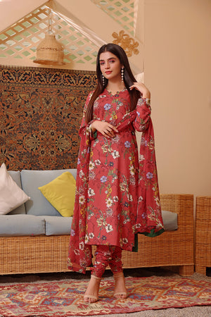 The article includes:Unstitched 3PCDigital Printed Shirt 3 yardsDigital Printed Chiffon Dupatta Digital Printed Trouser 2.5 yards