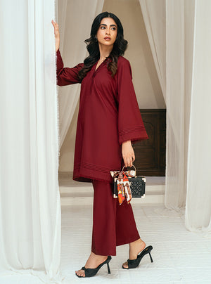 Rangeen Stitched 2 Piece Scarlet Co-Ord Set