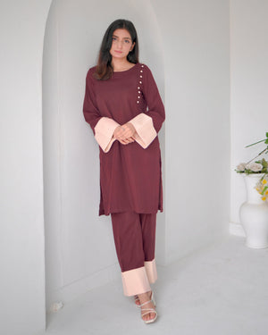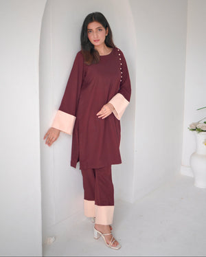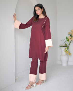 Zauk Stitched 2 Piece Collection-Scarlet Two Piece Dress