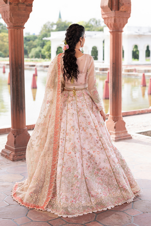 Soft, romantic, and exquisitely detailed Silkstone from the Ember Collection is a poetic blend of tradition and modern allure. Dressed in delicate off white, this hand-embellished lehenga choli features intricate craftsmanship across its front body and sleeves, paired with digitally printed and embroidered shamoz silk panels that exude refined elegance. The look is elevated with an embroidered zari dupatta bordered on all four sides and a richly adorned lehenga border, creating a silhouette that shimmers with festive grace.