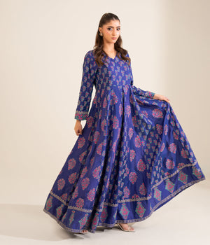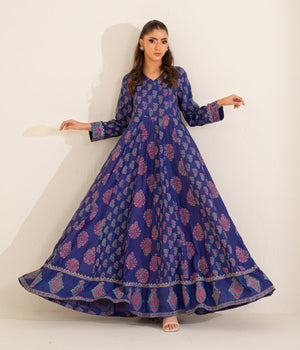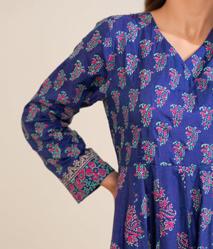 Sinopia Stitched 1 Piece Block Print Kaftan-SSBP26-008-L/Blue