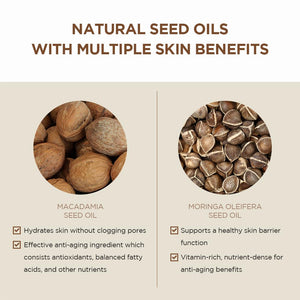 - Macadamia Seed oil enhances lock up moisture and nutritious essence