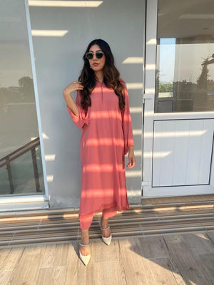 Manahils Stitched Threaded Love (Two Pc) Peach