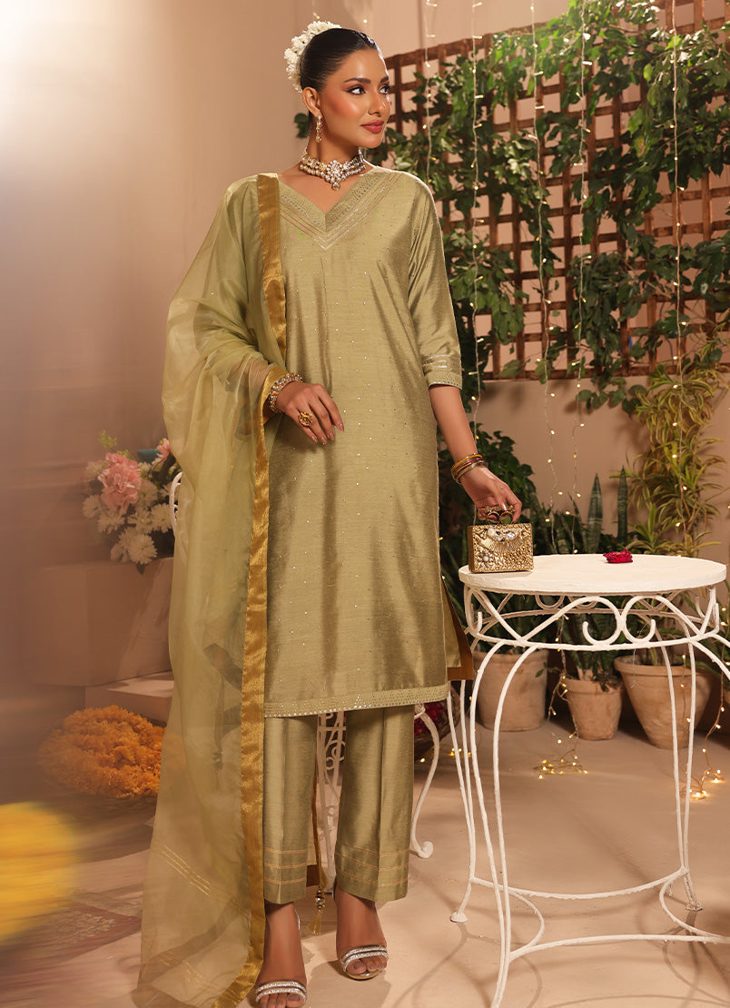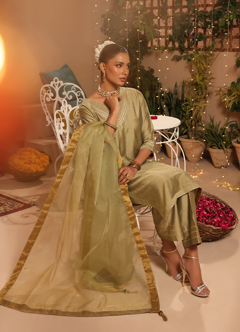 • Type: 3 Pc Formal Stitched Suit (Shirt, Trouser & Dupatta)