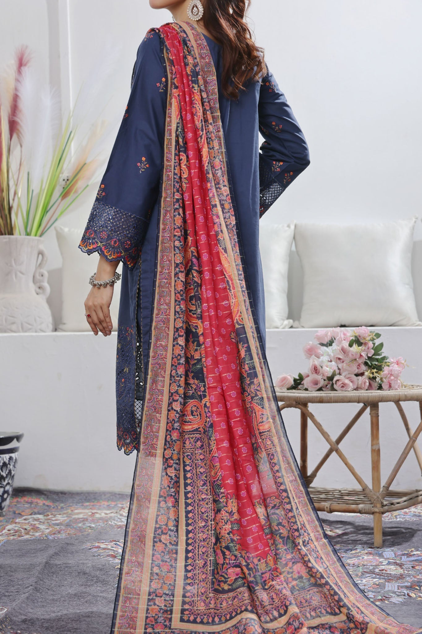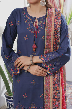 Aizal Stitched 3 Piece Embroidered Fancy Collection'2025-AE-105-Blue