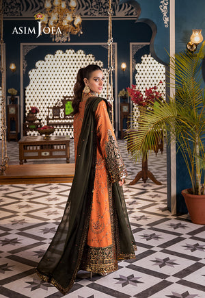 Immerse yourself in the symphony of a harvest sunset with this enchanting orange ensemble featuring olive green accents reminiscent of the changing hues of twilight. The rust and coral-colored threadwork alongside vibrant orange tones, dance like rays of sunlight upon ripe fields while intricate aari stitch and gold zari work shimmer like golden grains in the sunset glow. The embroidered neckline and jaal for the front evoke the serenity of twilight skies while embroidered borders and motifs add depth and elegance to the ensemble. Complete your look with the embroidered border for chaak and the dupatta featuring a four-sided border embracing the harmony of nature's bounty and celebrating the joy of harvest. Step into the enchanting twilight with this symphony of colors and energies, perfect for festive celebrations and cherished moments of togetherness