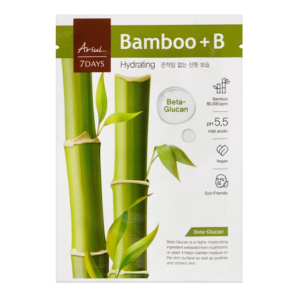 This Ariul - 7days Bamboo +B Mask 23ml is a potent sheet mask infused with bamboo extract and vitamin B to deeply hydrate and nourish the skin. Achieve a radiant complexion in just 7 days with this natural and effective solution. Clinically proven results for supple and moisturized skin.