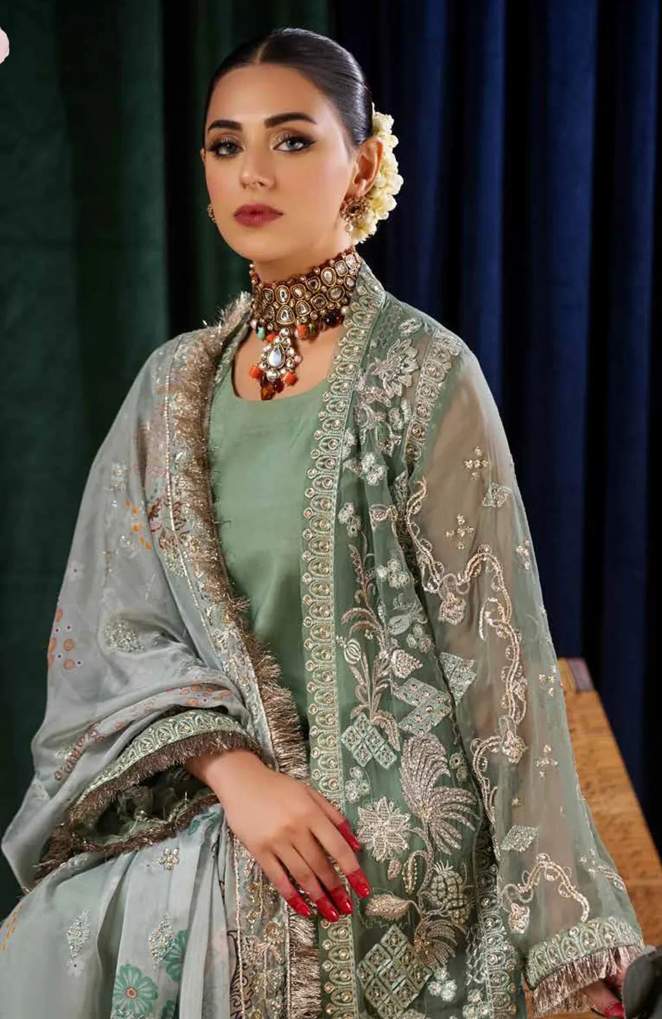 • Embroidered Organza Front & Back Daman Borders