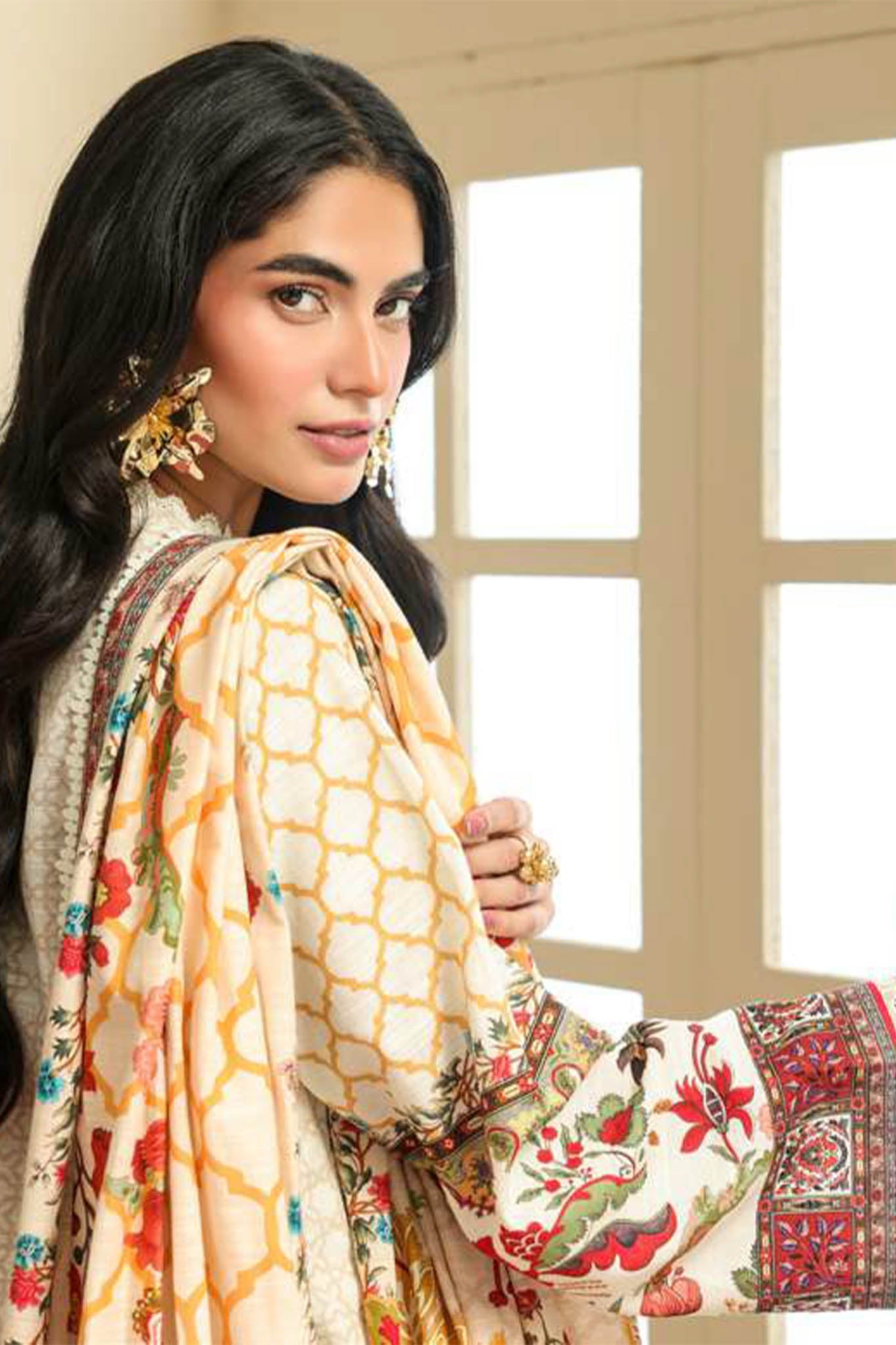 Sahar Unstitched 3 Piece Printed Khaddar Collection'2025-AW2-25-24-Ivory Camellia
