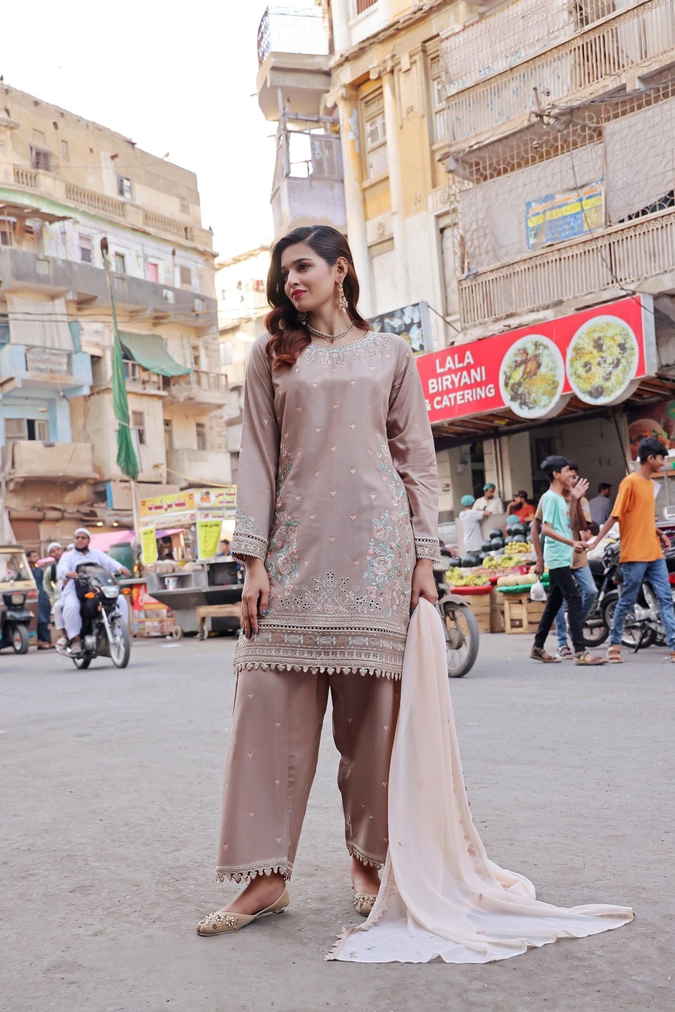 Soft chiffon dupatta — elegant and airy, adding a flowing layer of sophistication to your festive ensemble.
