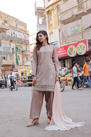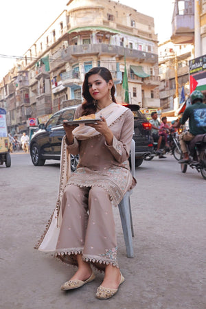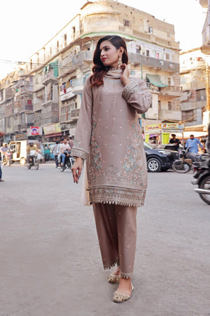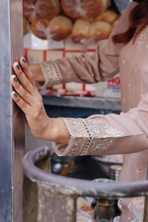 Ready-to-wear BanaDora lawn shirt — richly embroidered with festive patterns that reflect grace and seasonal charm. Crafted to offer a blend of luxury and comfort for special occasions.