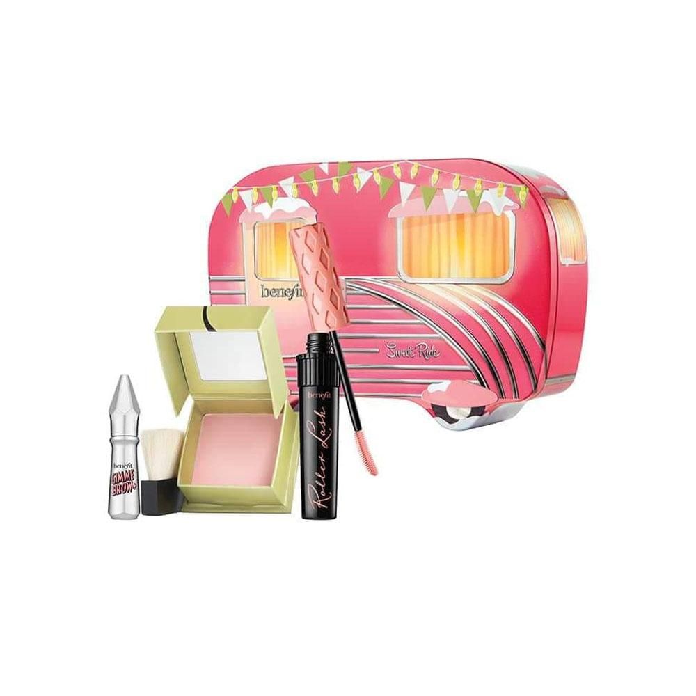 Benefit Sweet Ride Gift Set is a limited edition makeup gift set that has all the essentials for super-curled lashes, fuller-looking brows and sweet pink cheeks. Includes full sizes of bestselling Roller Lash curling mascara and our iconic Dandelion baby-pink brightening face powder, plus a mini Gimme Brow+ volumising fibre gel for full, natural-looking brows anytime, anywhere. The collectible tin makes an adorable container for keepsakes. And at a fabulous value, it’s the perfect gift to give (or get)!