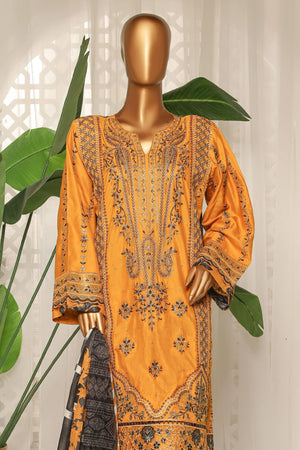 Bin Saeed Stitched 3 Piece Luxury Plain Cotton With Printed Back Collection'2025-NSM-2186-Mustard