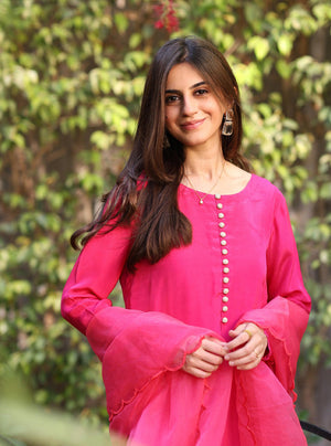 Introducing "Blossom," an ensemble radiating freshness and energy. This stunning dress, crafted from luxurious silk fabric, showcases a long shirt adorned with delicate loop buttons on the front. Perfectly paired with matching bottoms, it adds a modern twist.