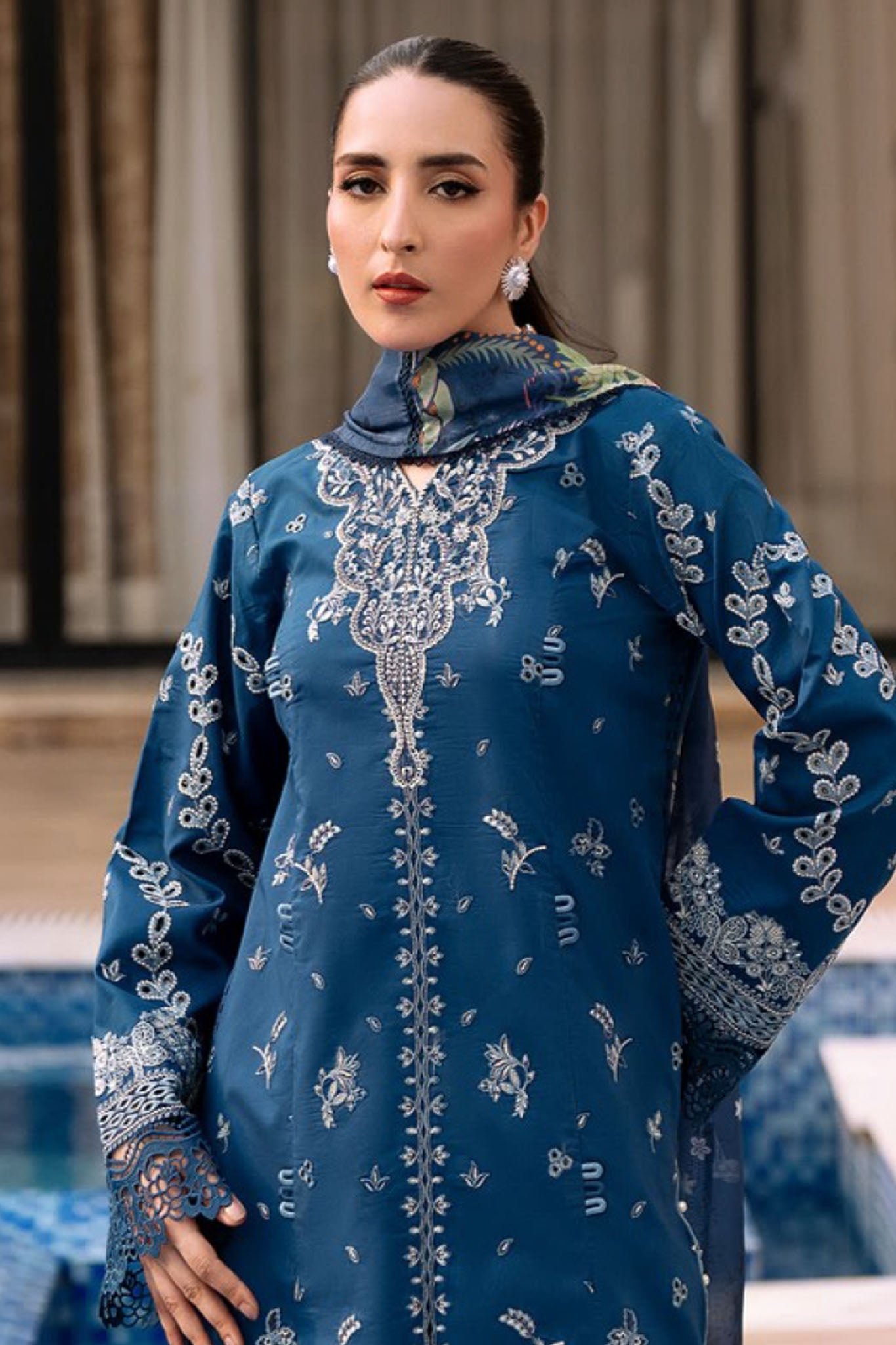 - Embroidered Neckline on Organza 1 Pc