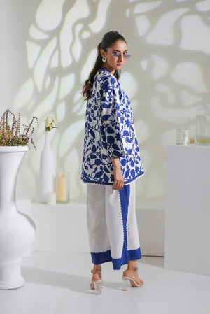 This 2 piece printed-colored co-ord set features luxurious and comfortable fabric and impeccable cuts given to every detail of the article, offering versatility and sophistication for any occasion.