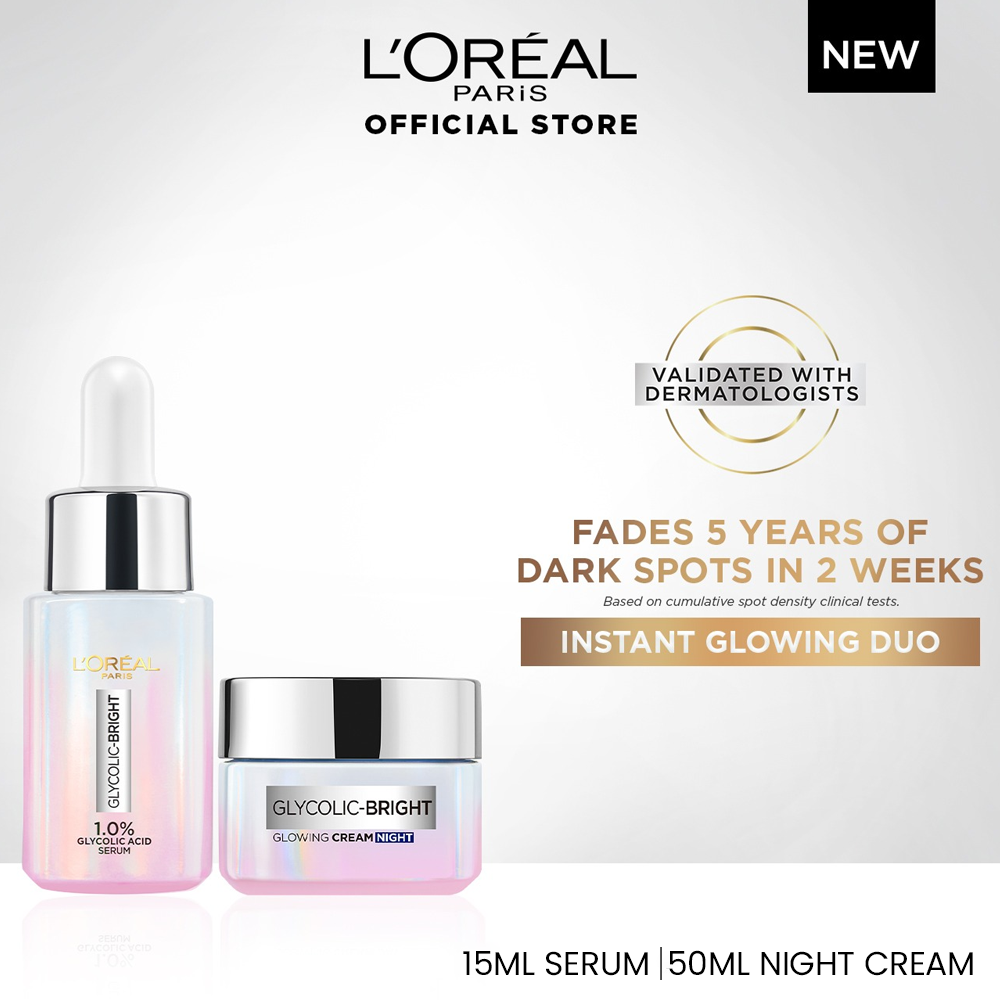 Bundle - Glycolic Duo - L'Oreal Paris Glycolic Bright Instant Glowing Face Serum 15Ml + L'Oreal Paris Glycolic Bright Glowing Gel Night Cream 50ml