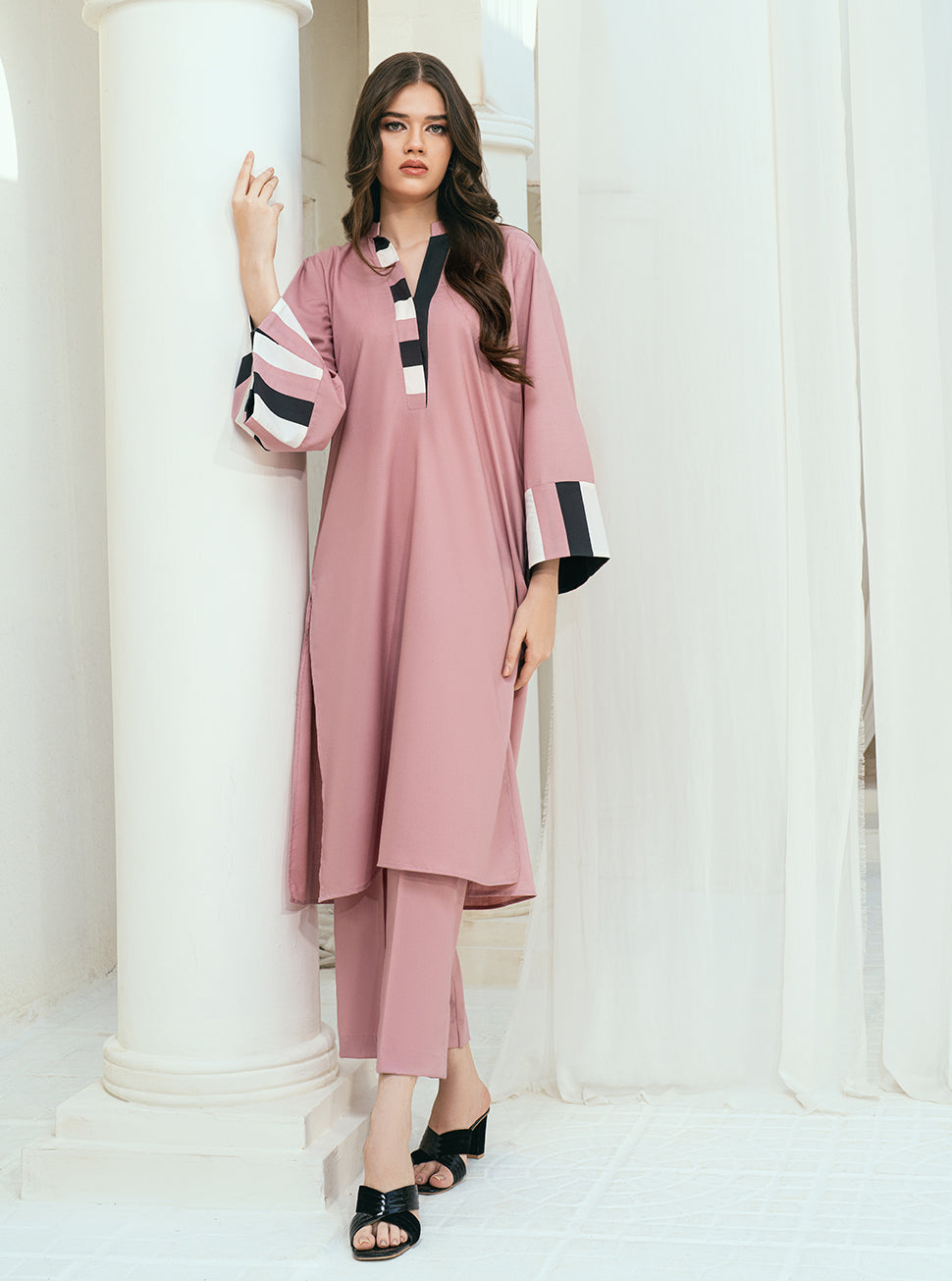 Embrace everyday elegance with our women's daily wear ensemble in the enchanting Misty Rose Mirage: Chic Attire in Pastel Pink. This chic collection features contrasting stripes in classic black and white, adding a contemporary twist to the timeless pastel hue. Crafted for comfort and style, the shirts and bottoms seamlessly blend versatility with thoughtful design, making this ensemble ideal for various occasions. Elevate your daily look with the understated charm of Pastel Pink, beautifully enhanced by the dynamic interplay of black and white stripes, creating a modern and sophisticated statement in fashion
