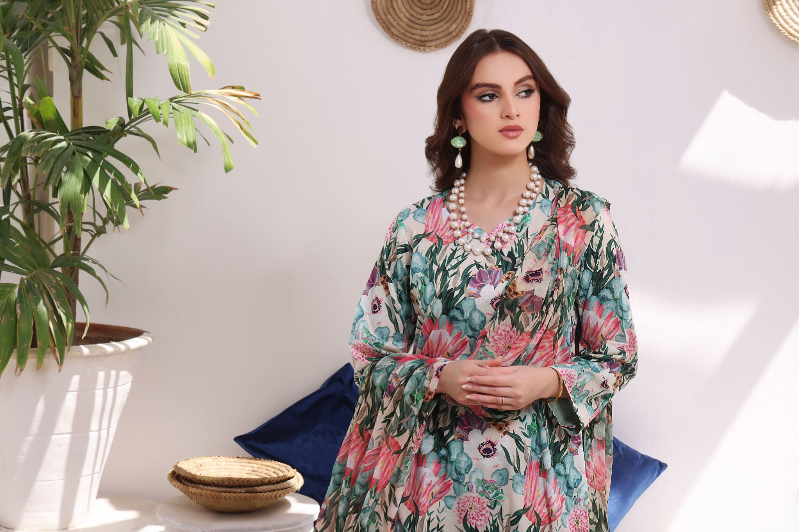 The article includes:Unstitched 3PCDigital Printed Shirt 3 yardsDigital Printed Chiffon Dupatta Digital Printed Trouser 2.5 yards