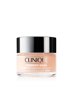 Clinique’s Moisture Surge 100H Auto-Replenishing Hydrator is a lightweight, oil-free gel-cream skin moisturizer for hydration that sinks in instantly, drinks in deep.