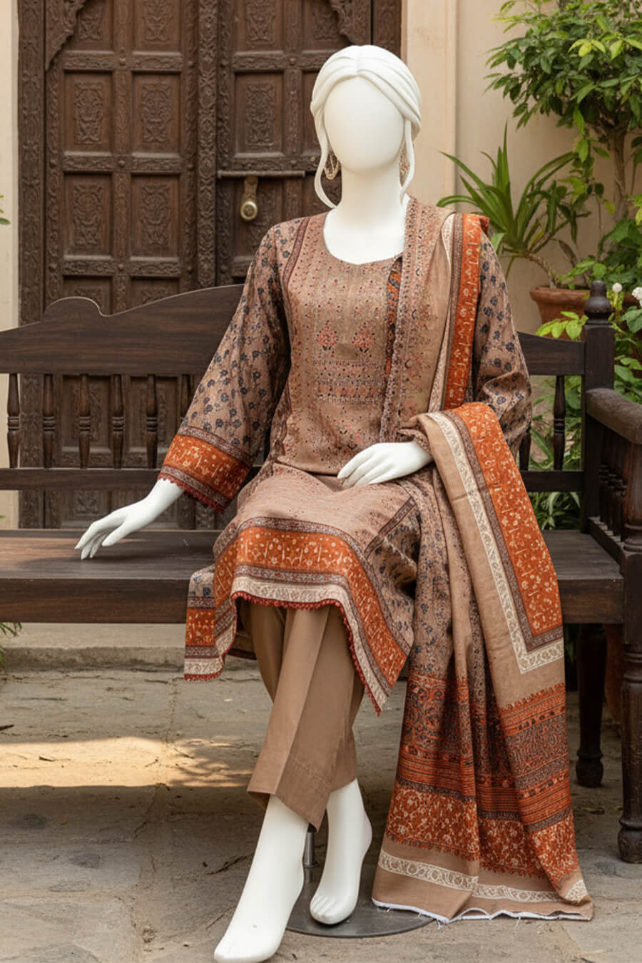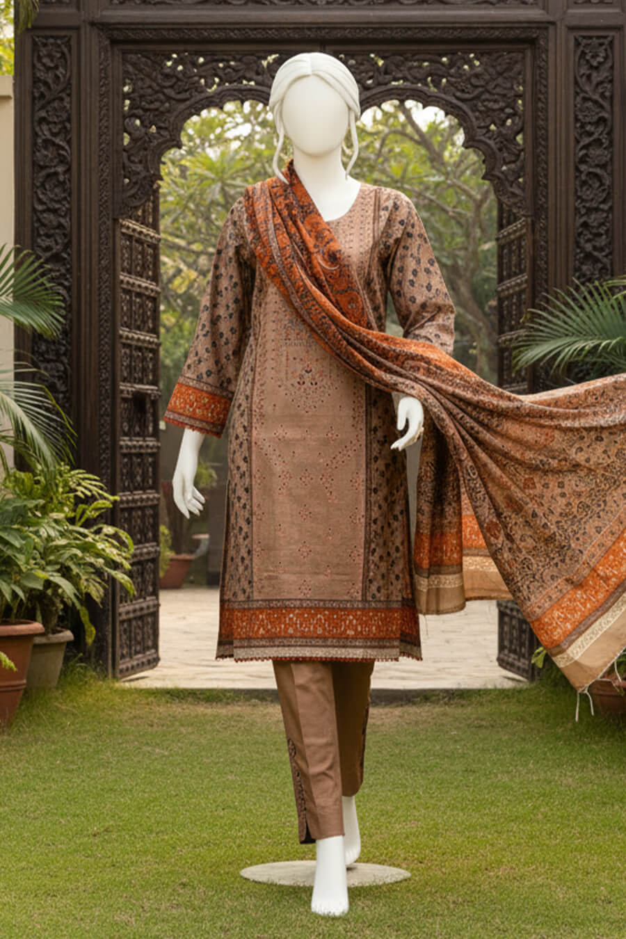Almeerah Unstitched 3 Piece Winter Khaddar Luxe Collection'2025-Cocoa Ember Warmth