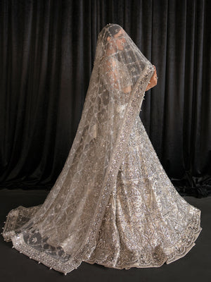 This bridal piece requires undivided attention and considerable amount of time to deliver the finest look for your wedding function. Please be mindful of standard lead time - subject to change without any prior notice - while placing an order. Our team will always be available to assist you with your queries. Please note that this is a custom size piece so our team will schedule an appointment to take custom measurements and then proceed onwards to the re-composition of the design.?