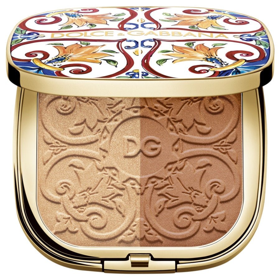 Duo for a natural glowFor the Solar Glow Illuminating Powder Duo, Dolce&Gabbana was inspired by the Mediterranean sun of Italy. The feather-light and compact powder formulas contour your skin, giving it a fresh-looking radiance and a natural complexion. You can apply the subtle highlighter wherever light hits your face, while the darker shade gives your complexion a sun-kissed glow thanks to specially coated pigments.