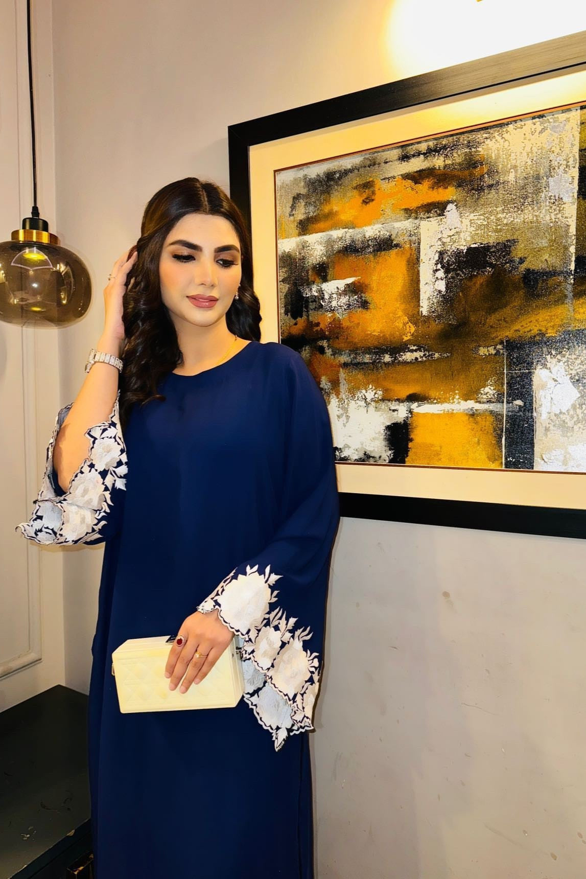 Whether attending a formal event, a business meeting, or a special gathering, this embroidered sleeves outfit makes a bold fashion statement. It€™s versatile enough to be paired with various accessories, allowing you to personalize your look without compromising on elegance. The navy color is timeless, exuding a sense of confidence and sophistication.