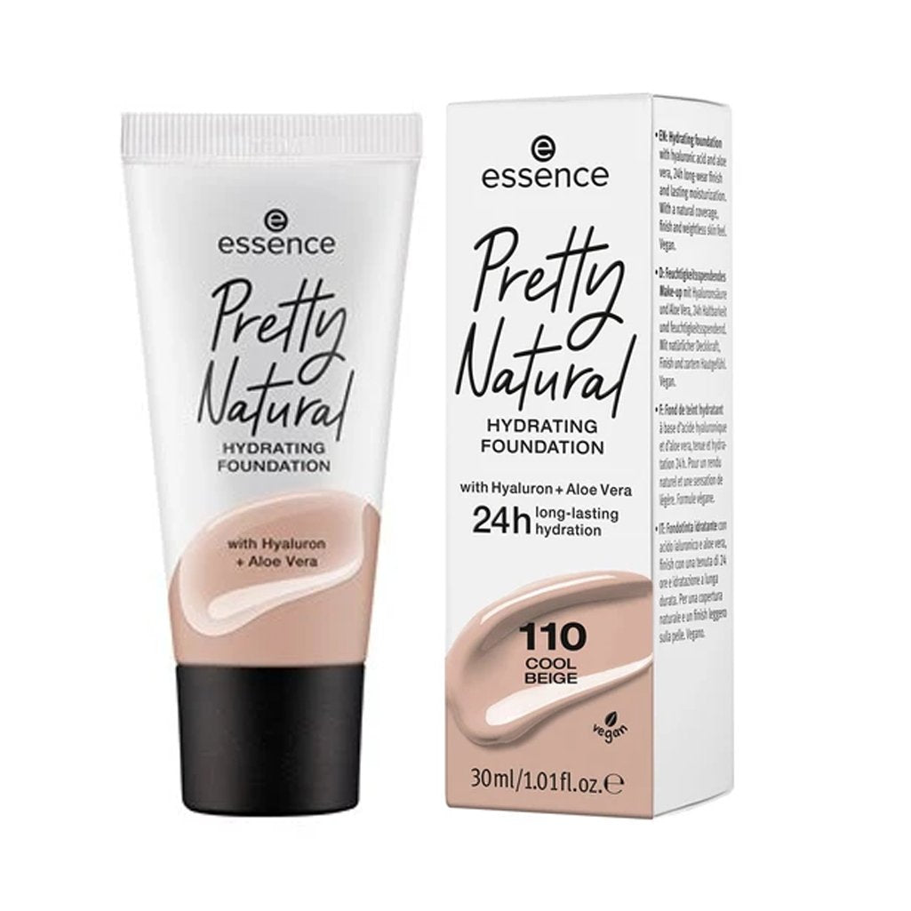 Pretty and natural! the essence pretty natural hydrating foundation with hyaluronic acid and aloe vera provides a natural, medium coverage finish and weightless feel for up to 24 hours, leaving you with the perfect combo of pretty and natural. vegan, paraben free, alcohol free, oil free, gluten free.