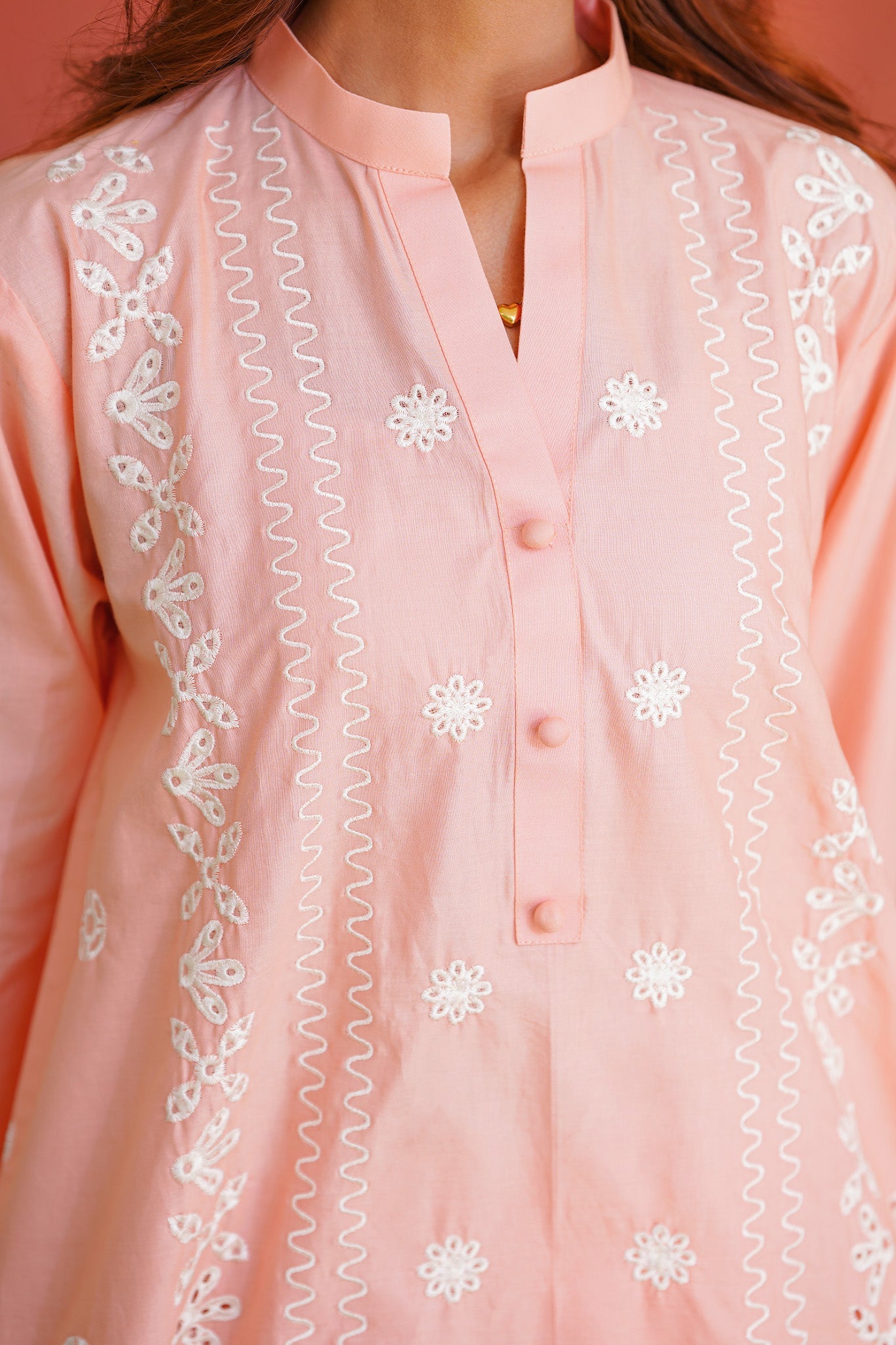 Elevate your everyday wear with this beautifully crafted embroidered cotton suit. The comfortable plazo-style trousers complete the refined yet easy-going look.