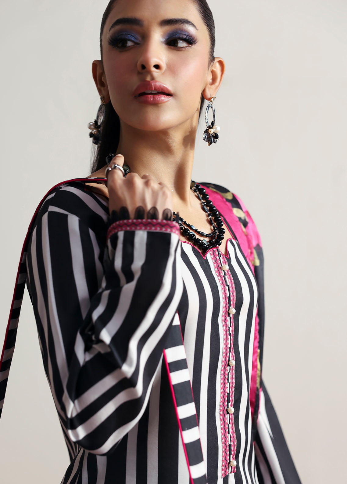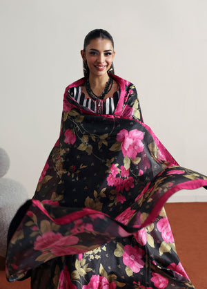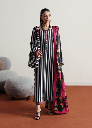 Fleuron captures the essence of effortless style with its sleek straight shirt, designed for modern elegance. Featuring a delicate cutout pattern on the neckline and an additional side detail, this ensemble brings a subtle yet striking contemporary flair. Paired with a vibrant printed silk dupatta and a coordinated printed lawn trouser, Fleuron is a refreshing take on everyday sophistication.