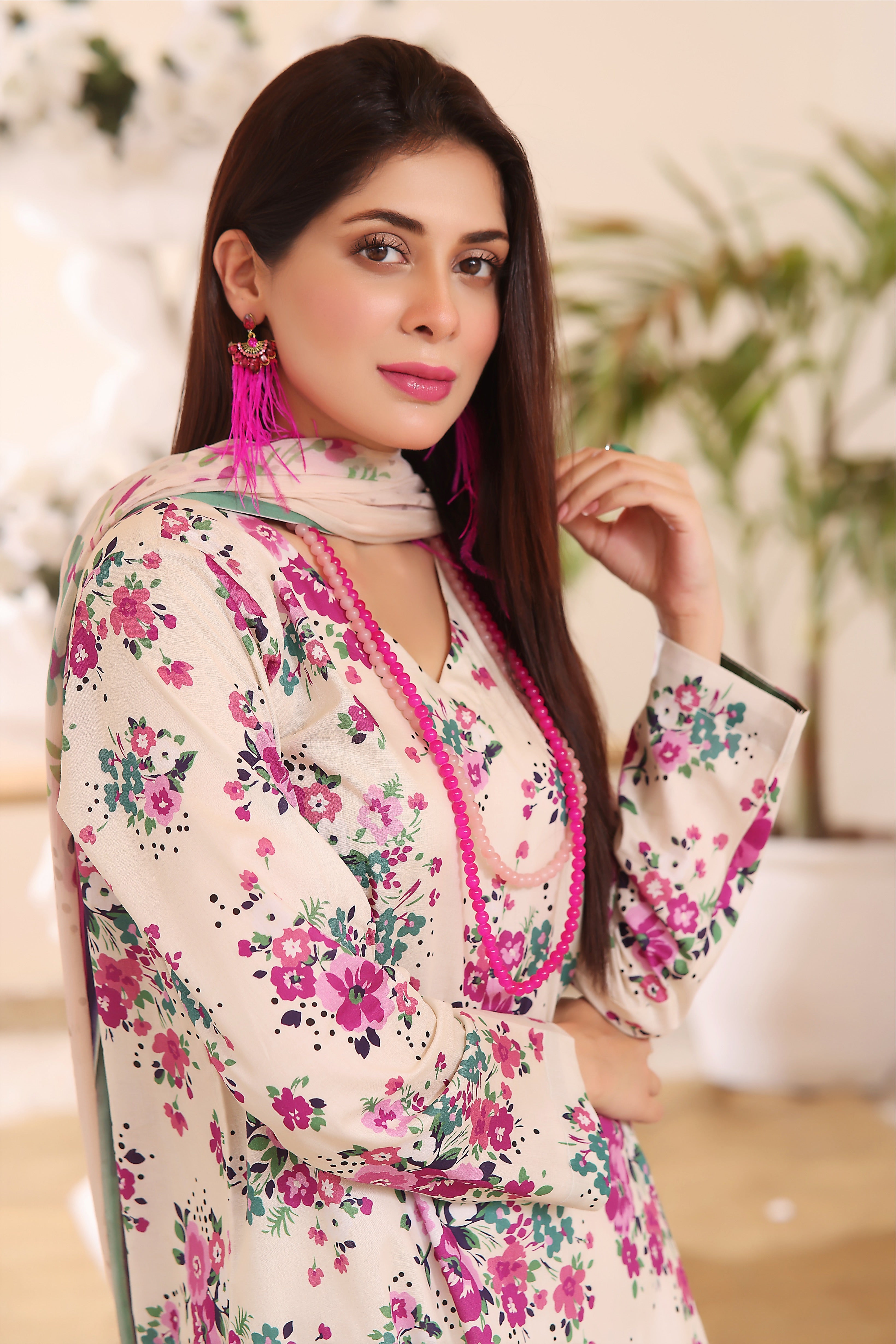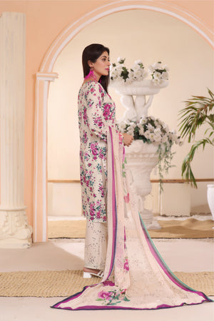 The article includes:Unstitched 3PCDigital Printed Shirt 3 yardsDigital Printed Chiffon Dupatta Digital Printed Trouser 2.5 yards