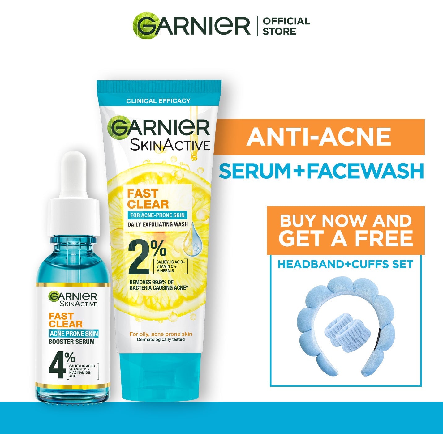 Garnier Anti-Acne Serum + Facewash with Free Headbands + Cuffs Set