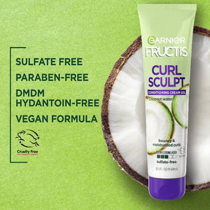Give your curls everything they crave with Garnier Fructis Curl Sculpt Conditioning Cream Gel, a styling cream gel for curly hair uniquely formulated to give the controlled definition of a gel with the soft subtle conditioning of a cream. It leaves curls moisturized, defined, and bouncy without the crunch. Sulfate free, paraben free, DMDM hydantoin free, and vegan.
