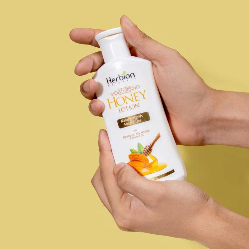 Herbion Naturals Honey Lotion is a Natural Skin Moisturizer, enriched with Almond Oil , Honey and Shea butter that leaves the skin soft, smooth and subtly scented.