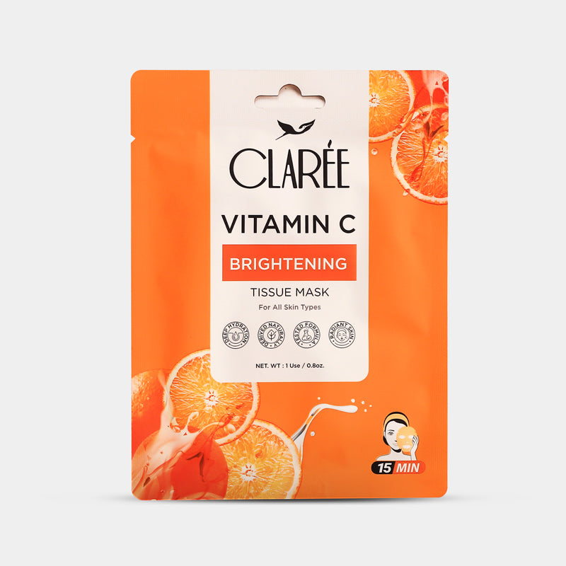 Clarée Vitamin C brightening tissue mask makes your skin bright and clear in just 15 minutes. Naturally, derived ingredients boost collagen production and help to maintain a smooth, even, and hydrated look.