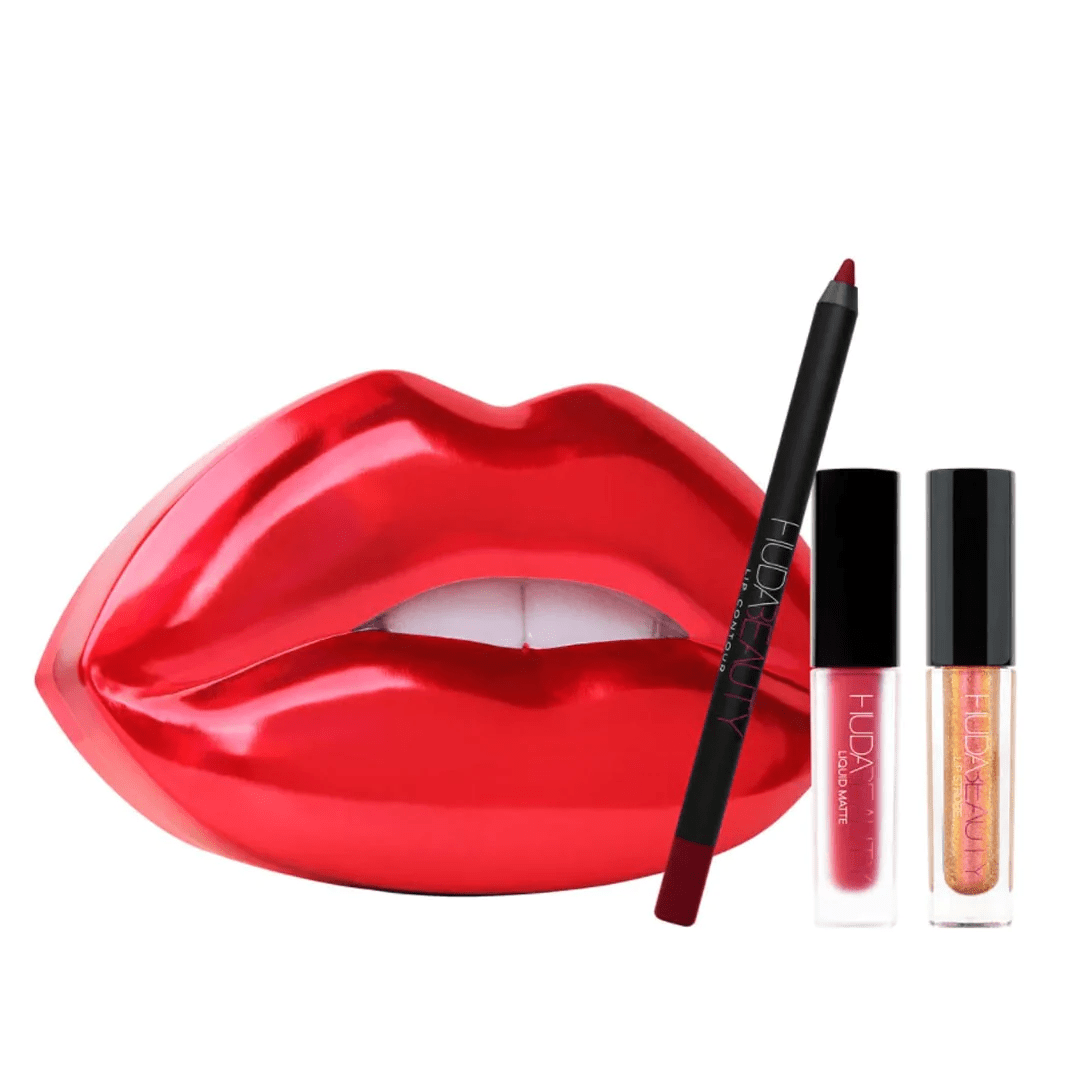 Inspired by Huda’s trademark pout, the Strobe & Contour Lip Sets are packaged in an ultra-covetable lip-shaped tin, making it the perfect gift for lipstick lovers. Carefully curated by Huda herself, each set features a full-size Lip Contour, a Mini Liquid Matte Lipstick, in a complementary shade, plus a mini Lip Strobe.