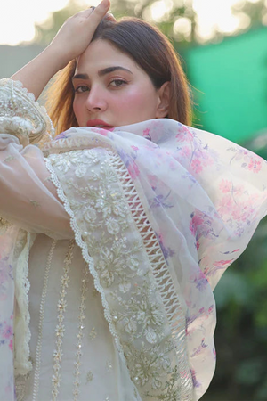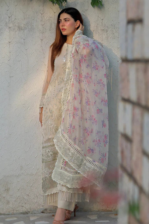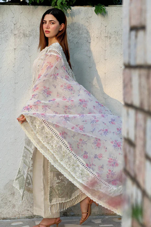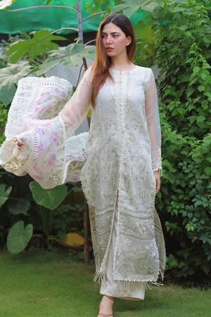 Additional Description:Embroidered Front Centre Panel On Organza 1 Piece Embroidered Front Right Panel On Organza 1 Piece Embroidered Front Left Panel On Organza 1 Piece Embroidered Back On Organza 0.75 Meter Embroidered Sleeves On Organza 0.66 Meter Embroidered Sleeves Border On Organza 1 Meter Embroidered Front Back Boder 1 On Organza 1.5 Meter Embroidered Front Back Boder 2 On Organza 1.5 Meter Digital Print Duppata On Organza 2.5 Meter Embroidered Dupatta 4 Side Border On Organza 7.5 Meter Trouser On Raw Silk 2.25 Meter