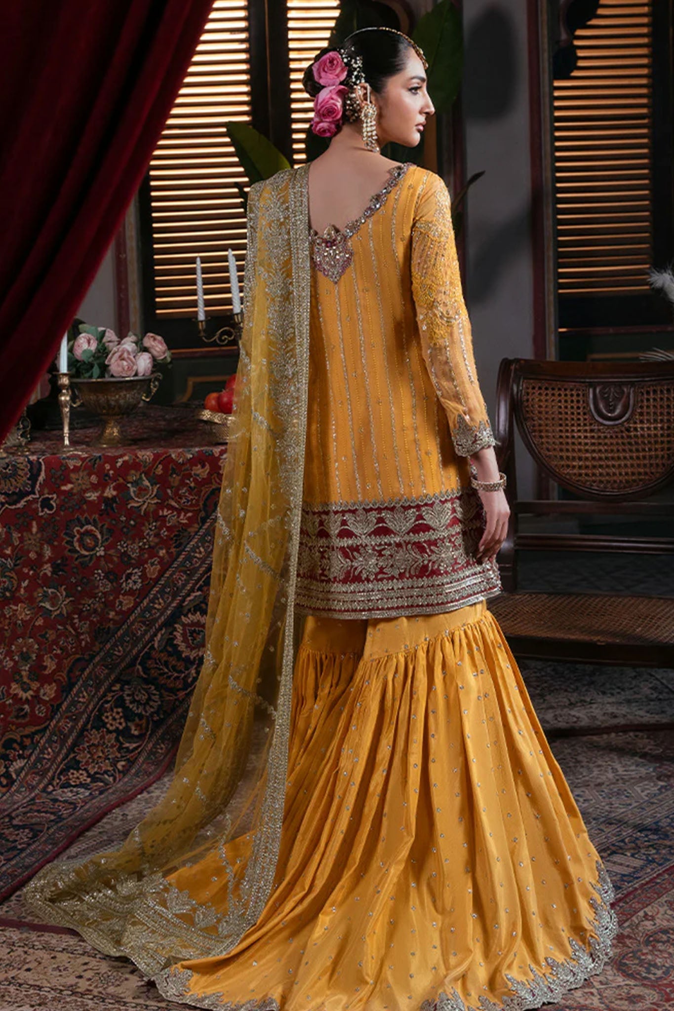 - Embroidered net back yoke
