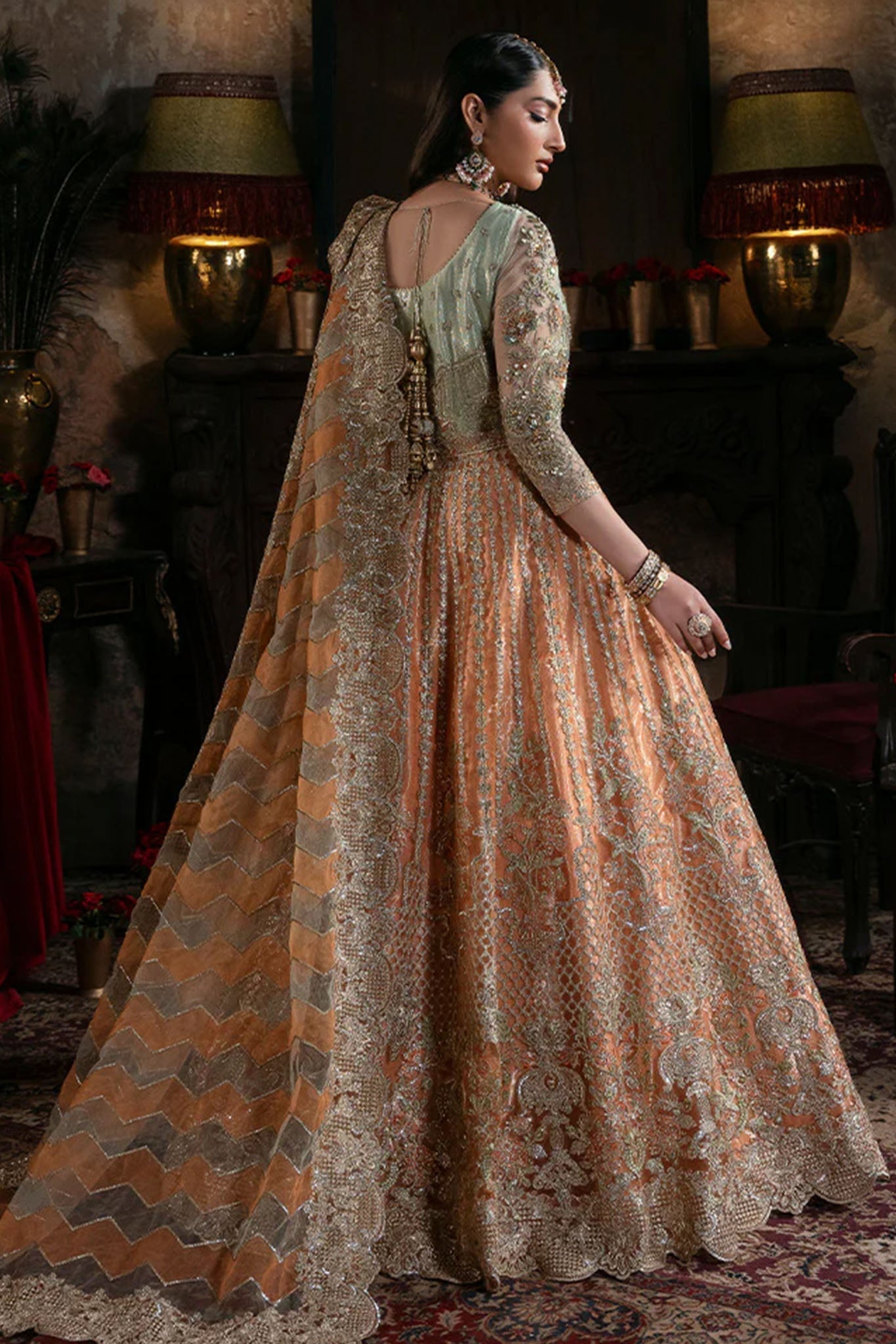- Embroidered net & organza dupatta.