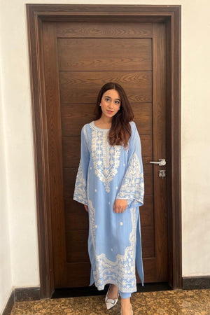 Manahils Stitched Ice Blue Embroidered Two Pc