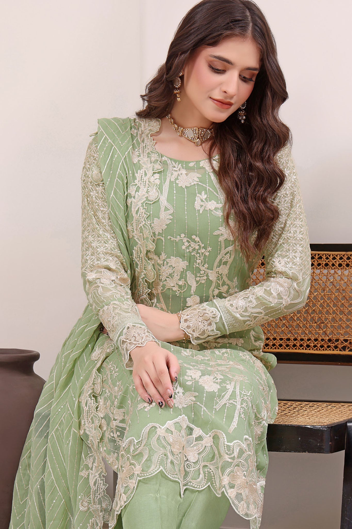 • Embroidered Chiffon Dupatta