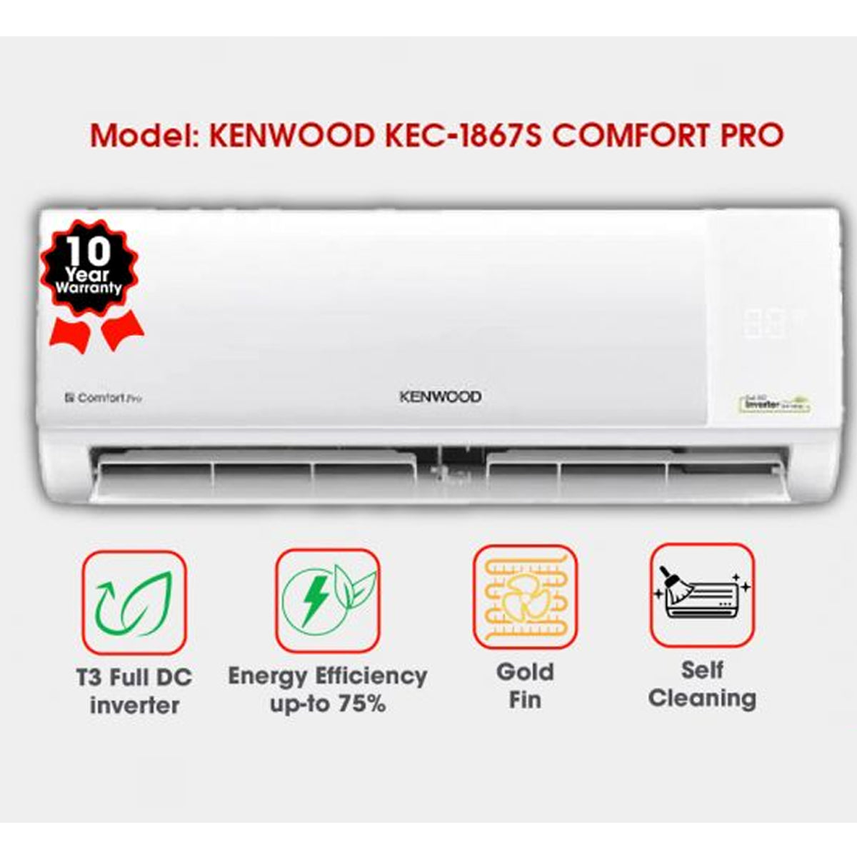 Kenwood 1.5 Ton DC Inverter Split Air Conditioner KEC-1867S Comfort Pro Heat and Cool