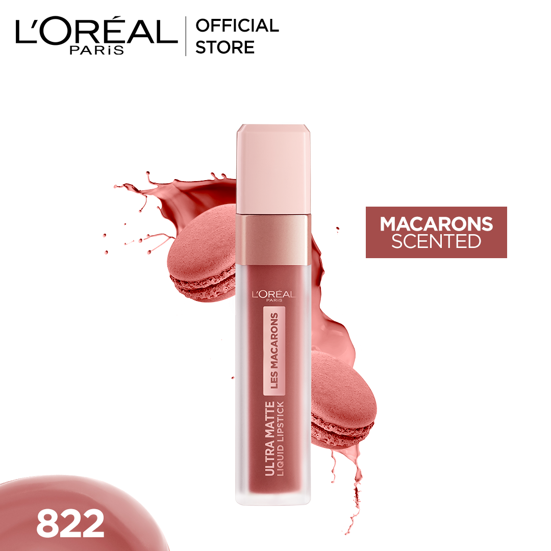 Choose your flavor! Les Macarons – Scented liquid lipstick with ultra-matte shades. Long lasting lipstick with 16 hour smooth hold. Irresistible scent. Discover the latest addition to LOréals lipstick collection: Les Macarons. All the indulgence, but without the calories! This ultra-matte liquid lipstick smells irresistible but resists everything. In one swipe, the shades of these long lasting lipsticks will also match your skin tone: mattifying powders for the perfect finish – elastomer gel for extreme comfort and wear – 6 yummy scents for a truly sensorial experience.