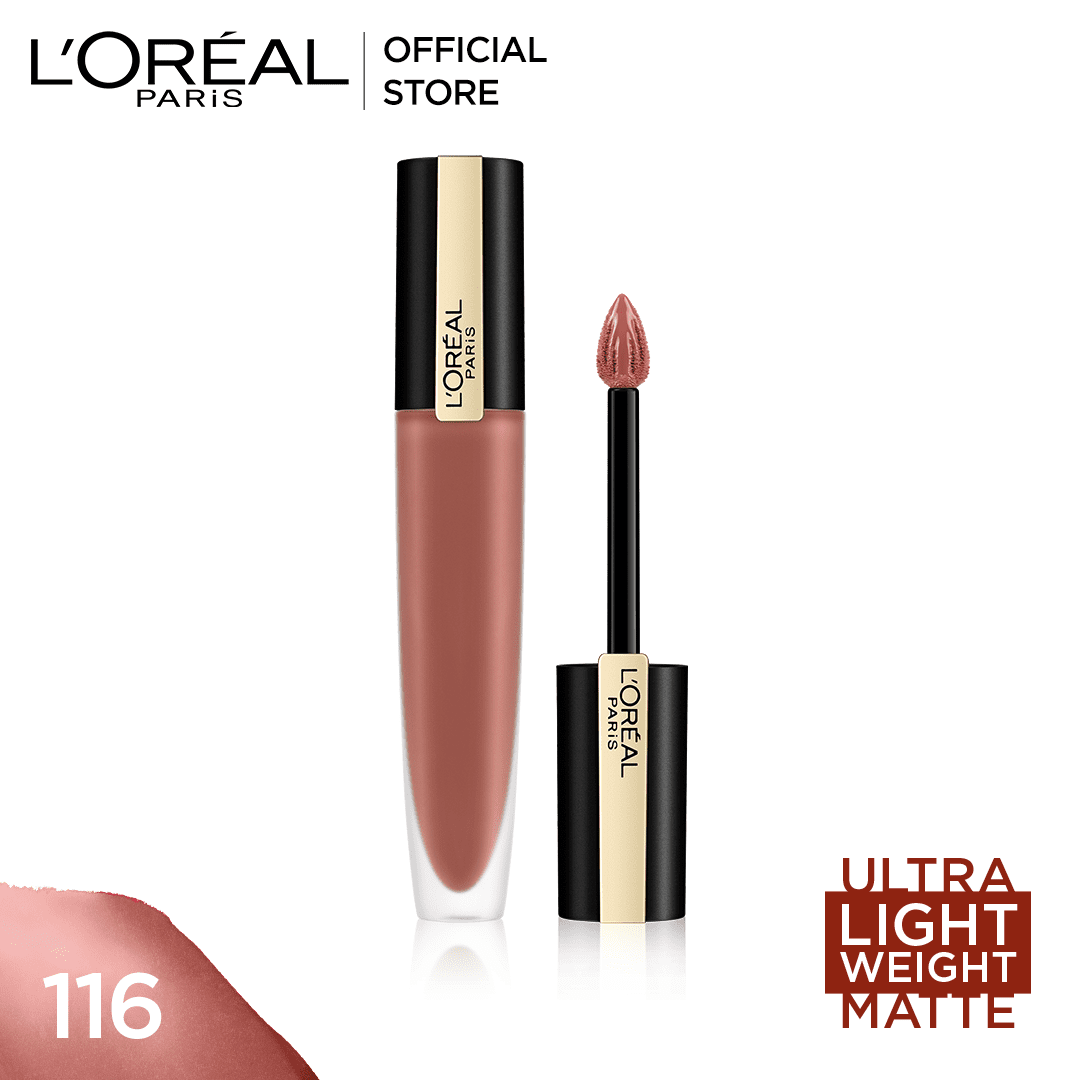 Find out more about the new matte lip ink, Rouge Matte Lipstick Signature by LOréal Paris, for a bold lip color and a bare-lip sensation. Strong color impact: Ultra lightweight, bare lip sensation, long lasting, all day wear. Precise feather applicator with reservoir. Waterproof lipstickSign your lips with a matte lipstick color! The new Rouge Matte Lipstick Signature liquid lipsticks by LOréal Paris are matte lip inks, characterized by their ultra-intense color shades and bare-lip sensation. Packed with vibrant dyes and pigments, this lipstick will provide you with an instantly pure color statement that lasts all day.