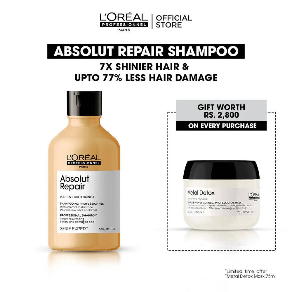 Introducing L'Oreal Professionnel Serie Expert Absolute Repair Shampoo - 300 ML, the ultimate solution for dry and damaged hair. Our expertly crafted formula, infused with the power of Gold Quinoa and Protein, is designed to deliver immediate and transformative care to your precious hair.