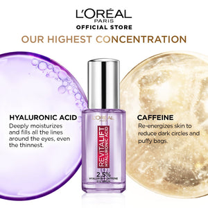 LOréal Paris Revitalift Filler Hyaluronic Eye Serum 20ml is an innovative composition that was specially developed to counteract signs of aging and fatigue in the eye area. Thinner and more sensitive, the skin around your eyes is the first one to display the harmful consequences of a stressful lifestyle and exposure to environmental aggressors. With this in mind, Loreal created the Revitalift Filler Eye Serum, a powerful formula that promises to help you achieve a younger and brighter-looking eye area.