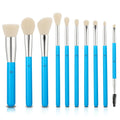 Flat buffer brush, Round powder brush, Angle check brush, Highlight brush, Blending brush, Smaller blending brush, Flat packer brush, Crease brush, Rounded crease brush, Eyebrow duo.